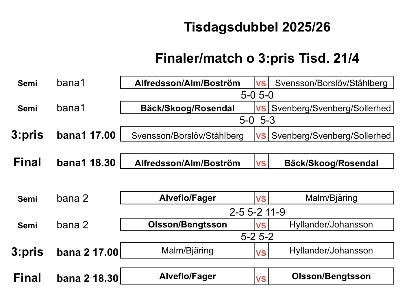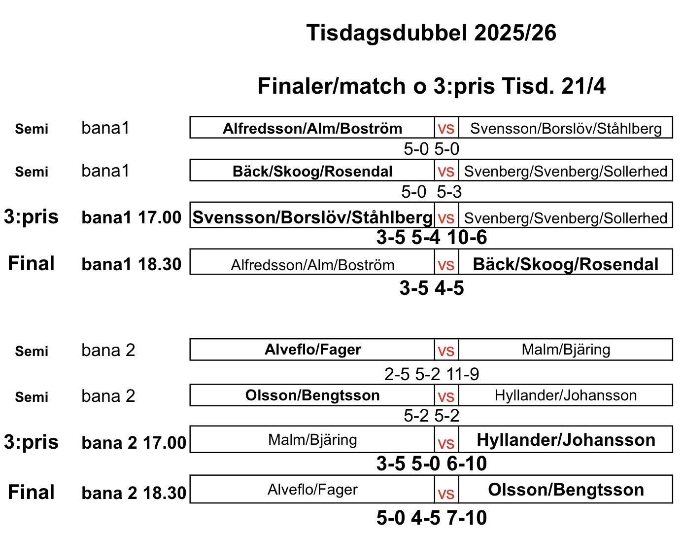 Ti 17.00 Final tisdagsdubbel