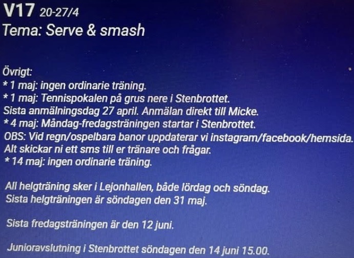 Må 12.00 Lunchtennis