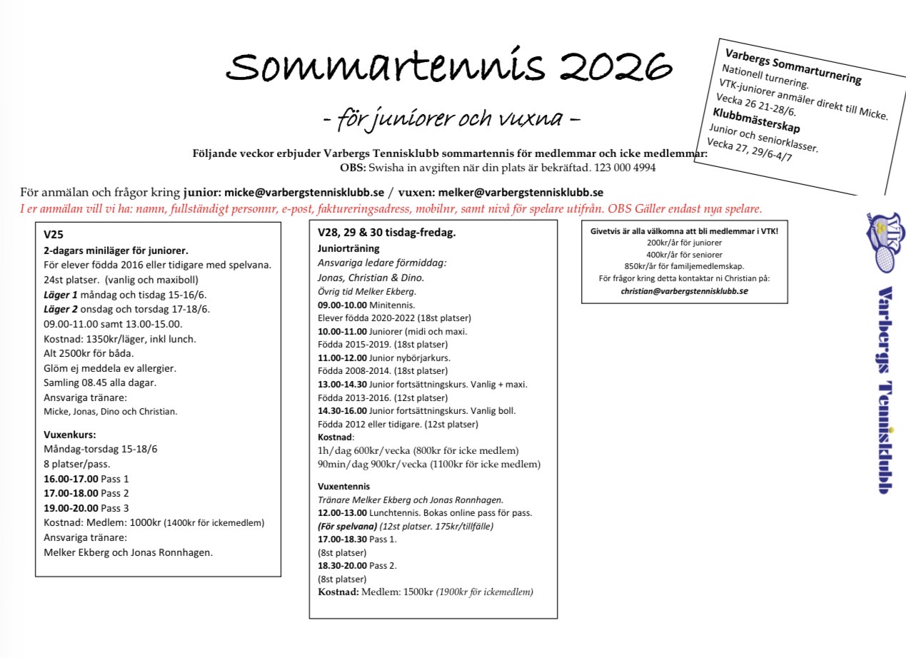 LejonhallenVECKA 14Må 12.00 LunchtennisTi 17.00 TisdagsdubbelnOn 11.00 Lunchtennis On 12.00 Lunchtennis