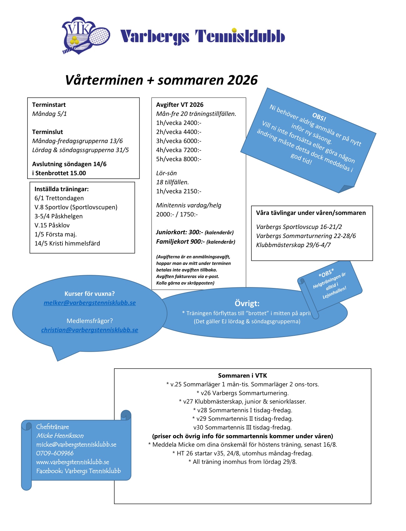 Lite datum: Söndagen den 14/12 är sista träningsdagen. Måndagen den 5/1 2026 sätter vi igång igen! (dock ingen träning tisdag 6/1). Se mer info gällande våren i den bifogade filen.
